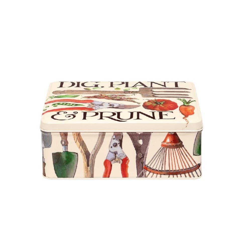 Emma Bridgewater blik met tuingereedschap. Ideaal voor het opberegn van de snoeischaren of koekjes.