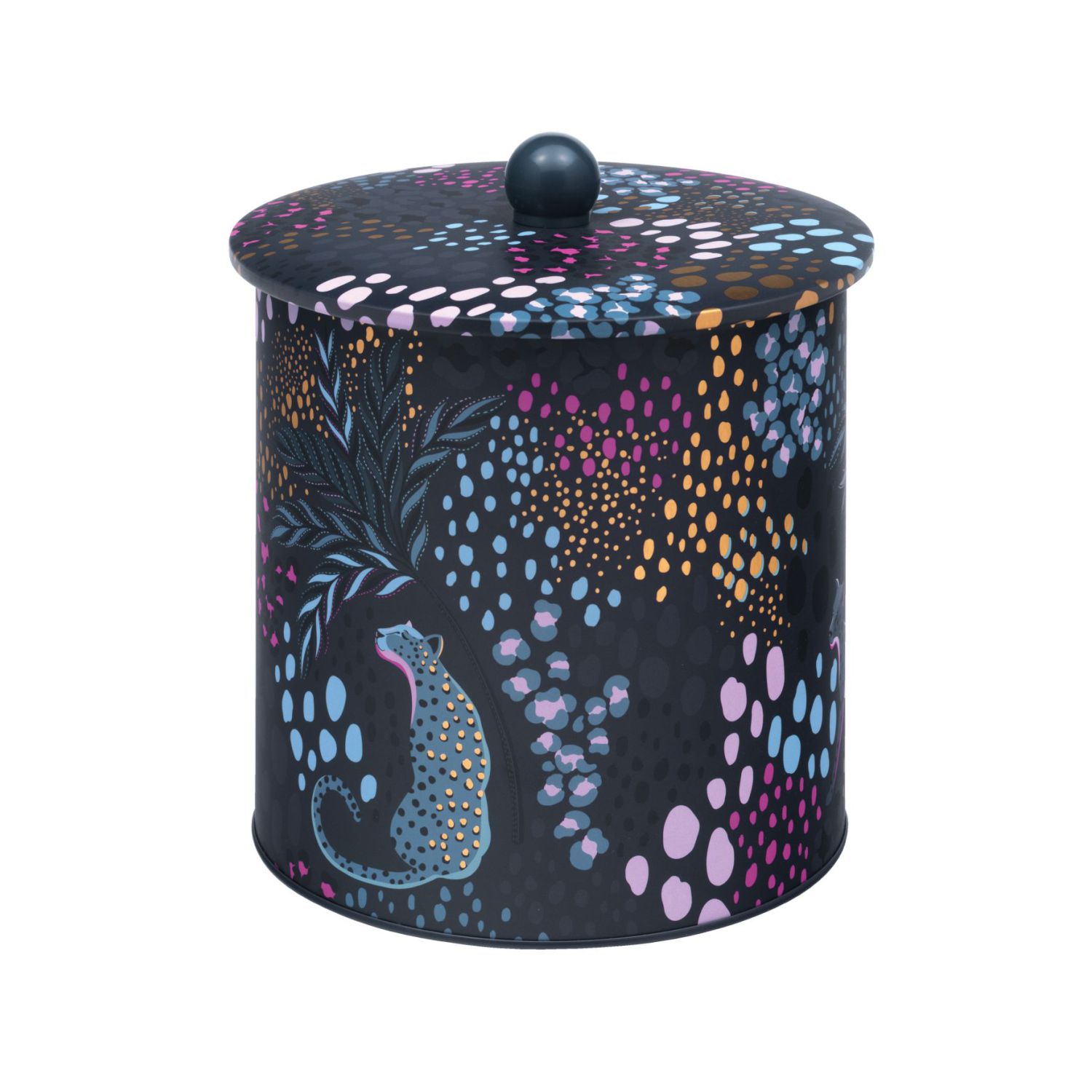Donker blauw vershoudblik met een luipaard.