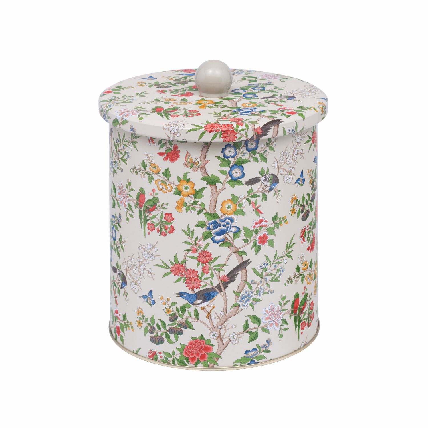 Sanderson biscuit barrel met bloemen en vogeltjes.